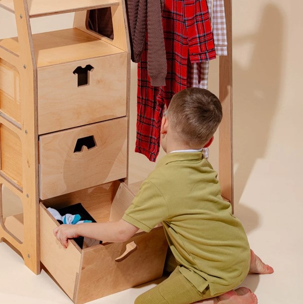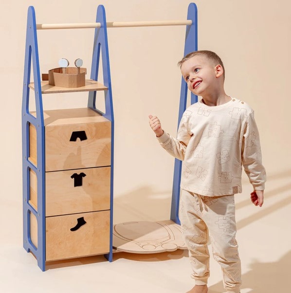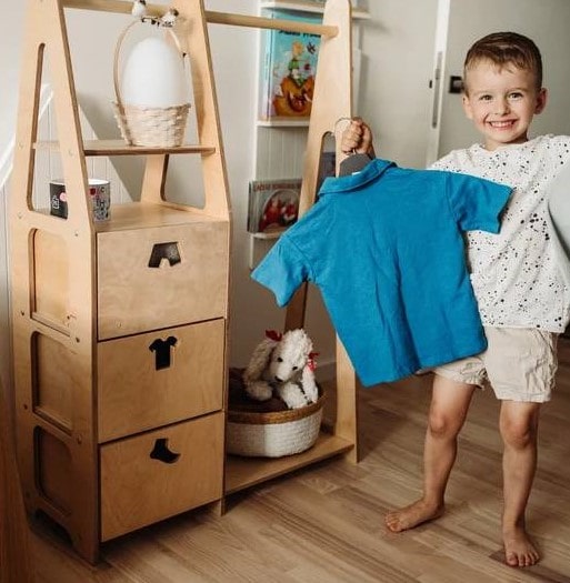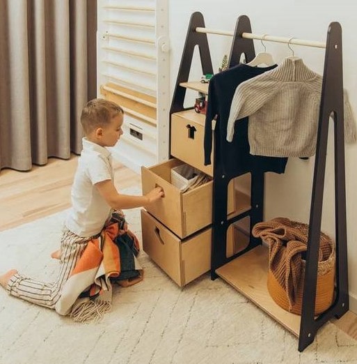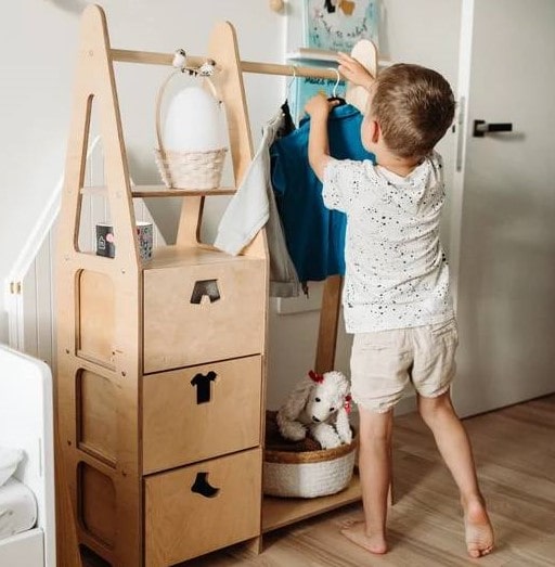 Les porte-vêtements, à l’instar des autres meubles de rangement, sont un élément important dans le développement de l’enfant car ils sont des facilitateurs d'autonomie.