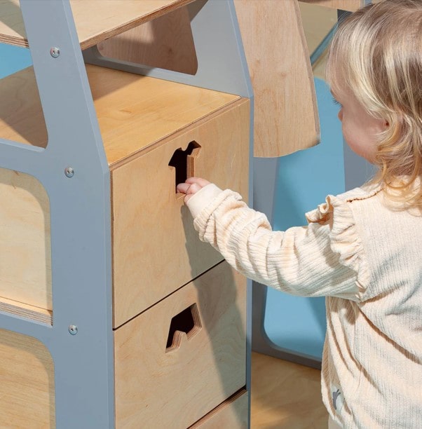 En s’habillant seuls, ils affinent leur motricité, découvrent les textures, les couleurs et les motifs, apprennent à trier, associer et ranger. Le portant Floki les accompagne dans ces apprentissages tout en apportant une touche naturelle et élégante à la chambre. Les tiroirs intégrés permettent de garder à portée de main les accessoires ou les chaussures préférés.