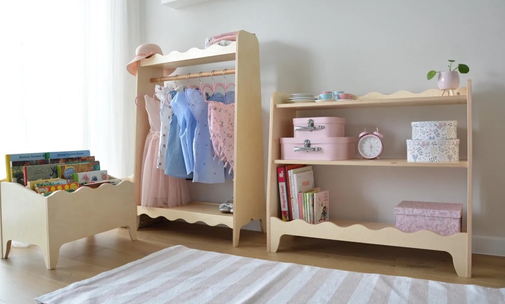 Dans la pédagogie de Maria Montessori, ce type de mobilier fait partie intégrante de l’environnement préparé, où les enfants s’engagent librement dans leurs activités quotidiennes. Il soutient le développement de l’ordre et de la coordination à travers des tâches pratiques comme s’habiller et organiser ses affaires.