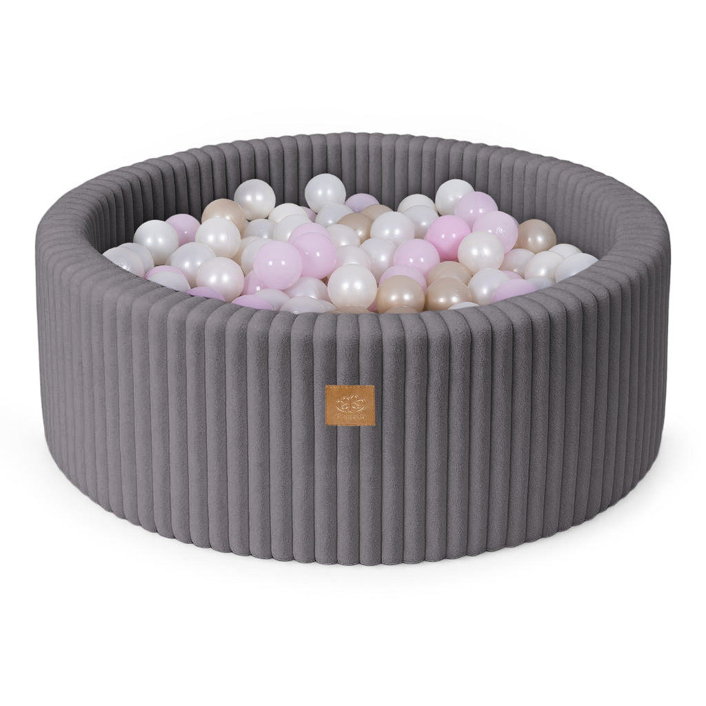 Piscine à balles ronde 90x30cm en velours côtelé Churros, 200 balles – Anthracite | Balles au choix