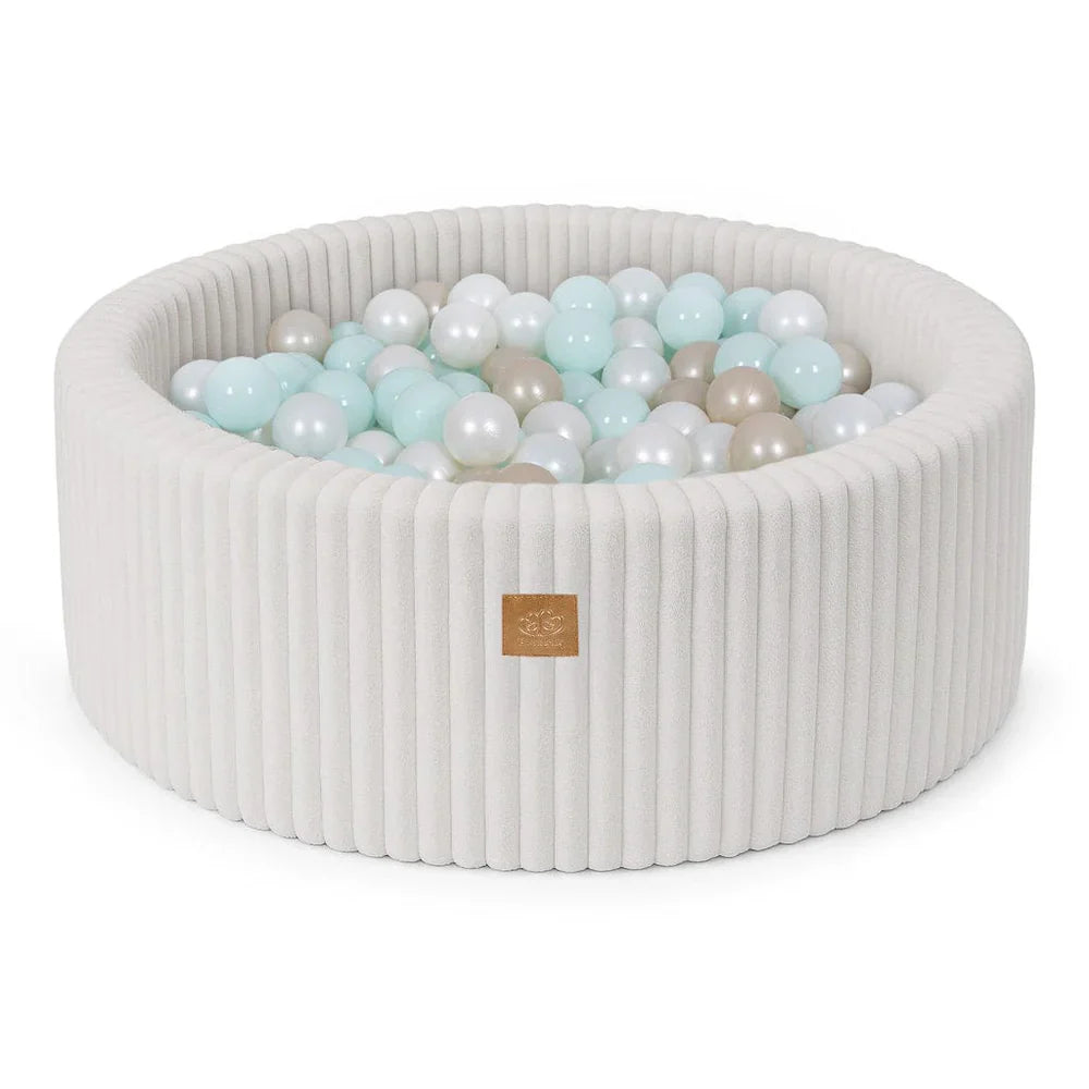 Piscine à balles ronde 90x30cm en velours côtelé Churros, 200 balles – Crème | Balles au choix