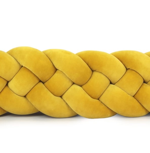 Tour de lit tressé 4 épis en velours Jaune Moutarde | 9 Tailles